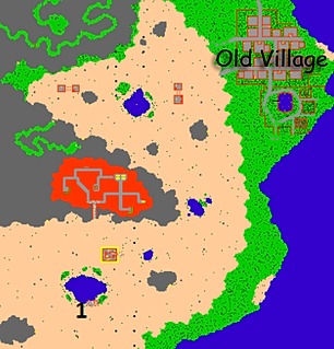 1° Passo: Começamos em Old Village e seguimos as imagens a seguir até o ponto marcado com "X" na quarta imagem.