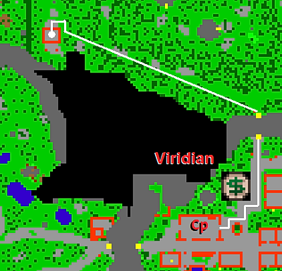 1° Passo: Começamos em Viridian e seguimos a seta.
