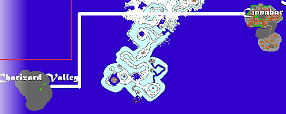 1° Passo: Começamos em Cinnabar e seguimos a seta.